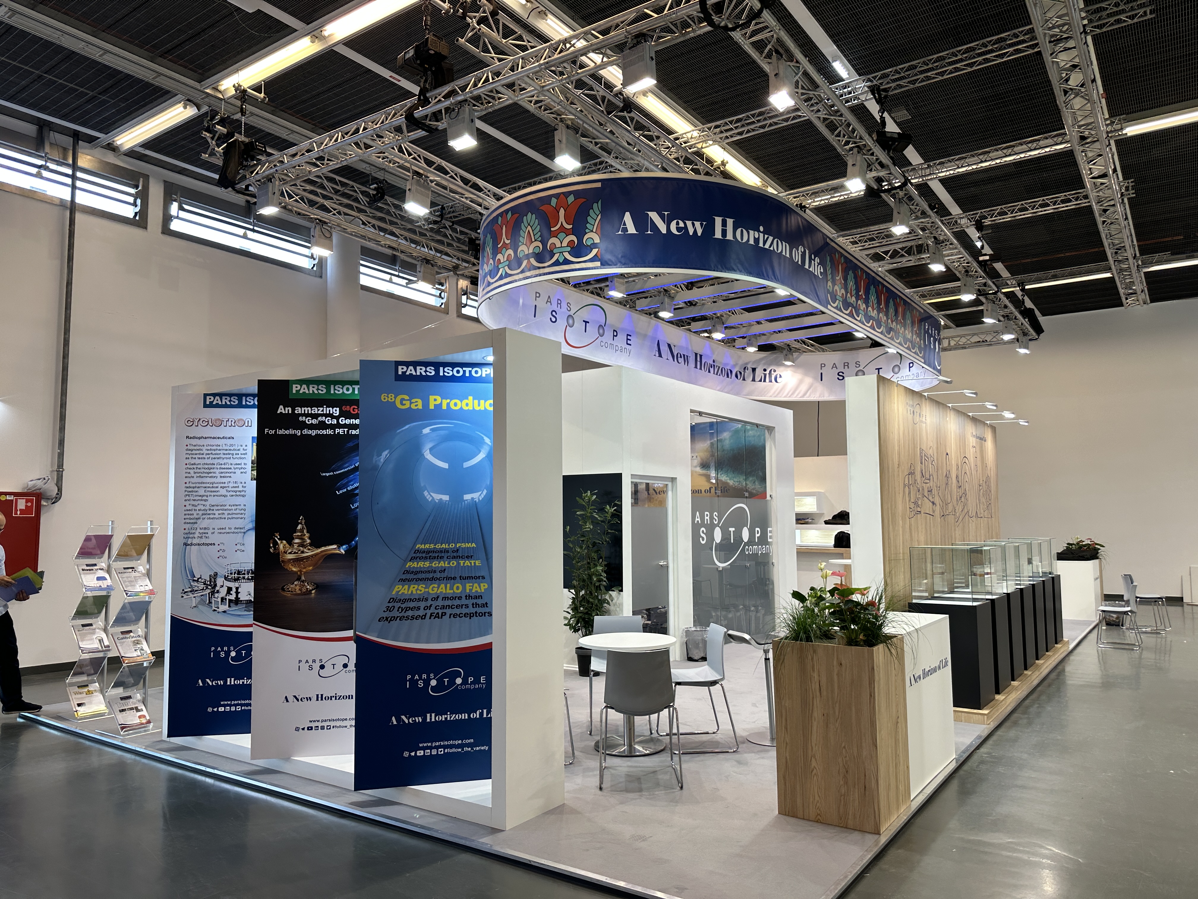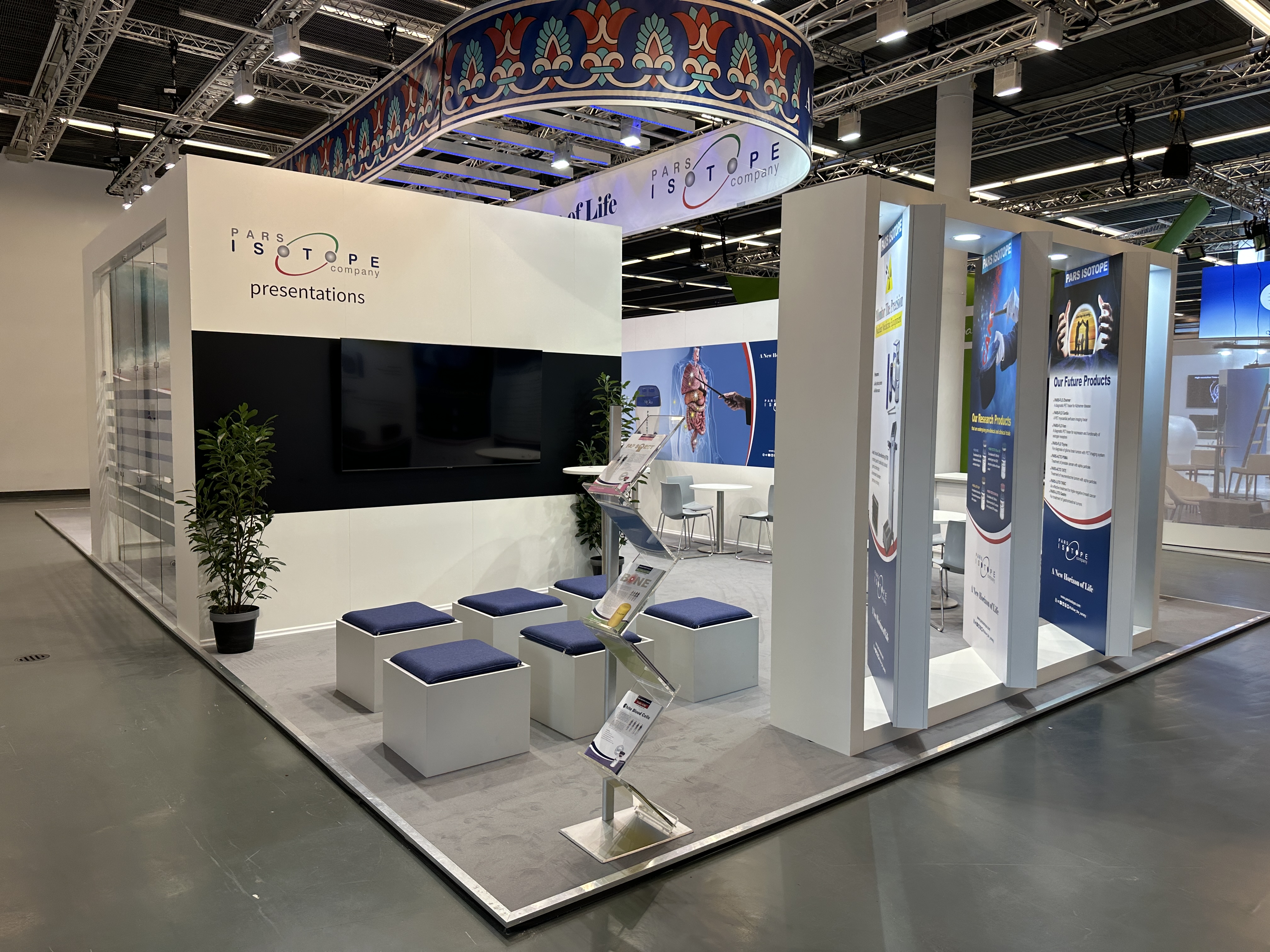 Für Pars Isotope realisierten wir zur  EANM 2023 in Wien einen 98m² großen Messestand, der Wissenschaft und moderne Architektur vereinte. Der zentrale Meetingbereich mit seiner transparenten Glasfront bildete das Herzstück der Konzeption – sichtbar verbunden mit dem Ausstellungsbereich, doch durch akustische Trennung für konzentrierte Fachgespräche optimiert. Besonderes Augenmerk lag auf der variablen Nutzung: Die flexible Raumgestaltung erlaubte einen schnellen Wechsel zwischen Ausstellungs- und Präsentationssituationen.