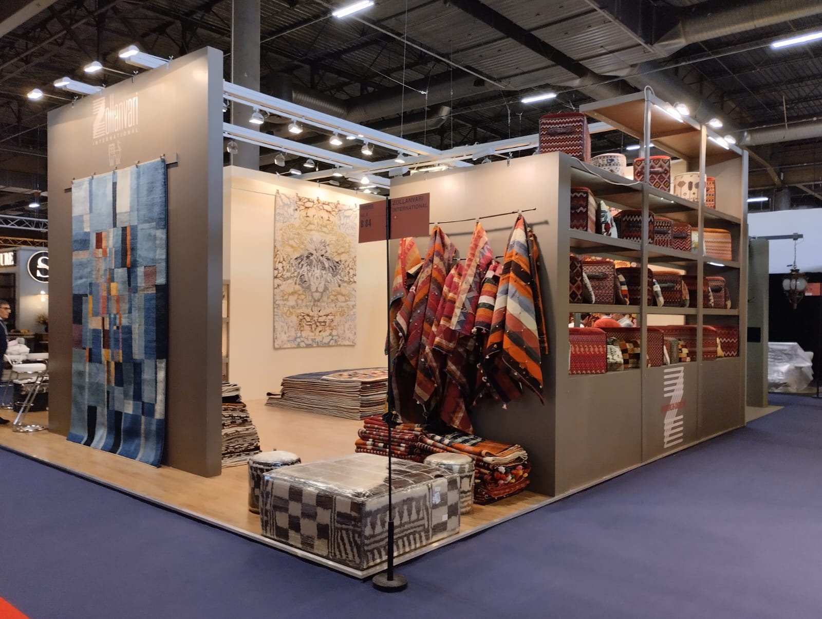Für Zollanvari realisierte Toppars GmbH auf der Maison & Objet 2023 in Paris einen 64 m² großen Messestand, der kunstvolle Teppichtradition mit modernem Design verband. Die offene, lichtdurchflutete Gestaltung lenkte den Blick gezielt auf die hochwertigen Unikate und schuf eine ruhige, edle Ausstellungsatmosphäre. Toppars setzte das Markenbild authentisch und stilvoll um – von der Konzeption bis zum letzten Detail.